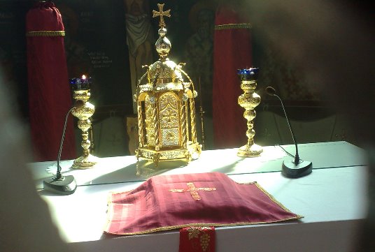 ιδ. Ὁ Τίμιος Σταυρός. Ἀνάλογα μὲ τὴ λειτουργική του χρήση ἔχουμε: (1) Τὸ Σταυρὸ τῶν λιτανειῶν, (2) Τὸ Σταυρὸ τοῦ ἁγιασμοῦ, (3) Τὸ Σταυρὸ εὐλογίας τῆς Ἁγίας Τραπέζης, (4) Τὸν «Ἐσταυρωμένο» τοῦ Ἱεροῦ, ποὺ ἐξάγεται τὴ Μεγάλη Πέμπτη γιὰ προσκύνηση στὸ μέσον του Ναοῦ.